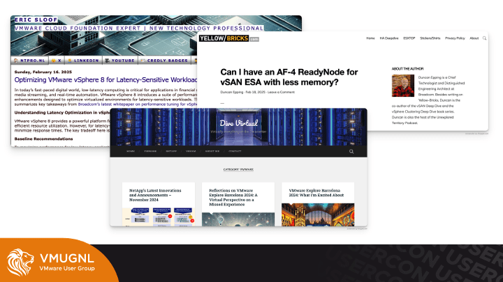 The foundation that’s laid within VCF by the ESX layer is laid within the vCommunity by individual contributions. These are contributions like blogs, podcasts, and webinars. Thanks to blogs like NTPRO from Eric Sloof, or Yellowbricks from Duncan Epping, but also many others, knowledge is shared.